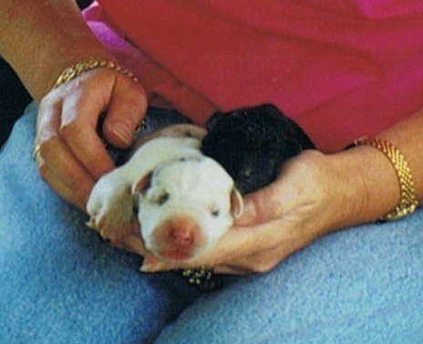 Big mistake. Twiggy (right in the pic) was a part of a litter that had probably the ugliest puppy in the world as one of its members. Cotton was mostly white with tiny black spots that made her look like the exploded stuffing of a cotton boll. She was mine from the moment I saw her and there was no way I could leave her behind. So, we took both and brought them home ten weeks later.